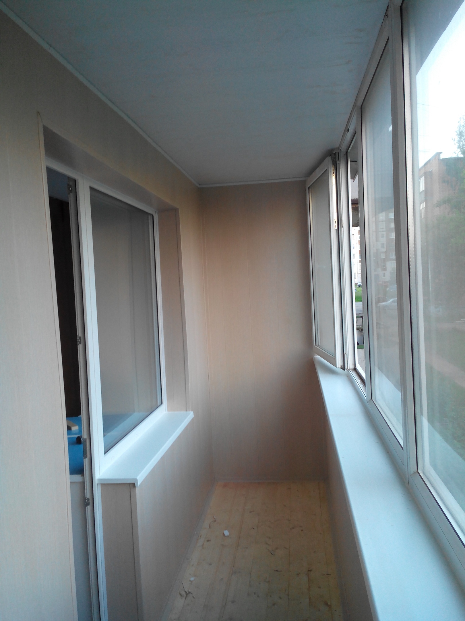 Если на балконе или лоджии установлена рама с заполнением в одно стекло, то нецелесообразно будет использовать дорогостоящие отделочные материалы и тем более выполнять дополнительную теплоизоляцию стен. В этом случае уместно применить декоративные панели ПВХ. Они позволяют сгладить все неровности стен, пригодны для отделки потолка, имеют широкую цветовую гамму. Отделка панелями ПВХ самый экономичный вариант.